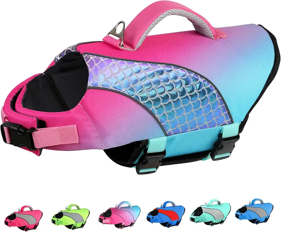 I got the DOGLAY Dog Life Jacket for my lab, and it’s amazing! The reflective stripes and rescue handle make swimming so safe, and the adjustable straps fit perfectly. It’s super buoyant and durable. My dog loves wearing it at the lake!